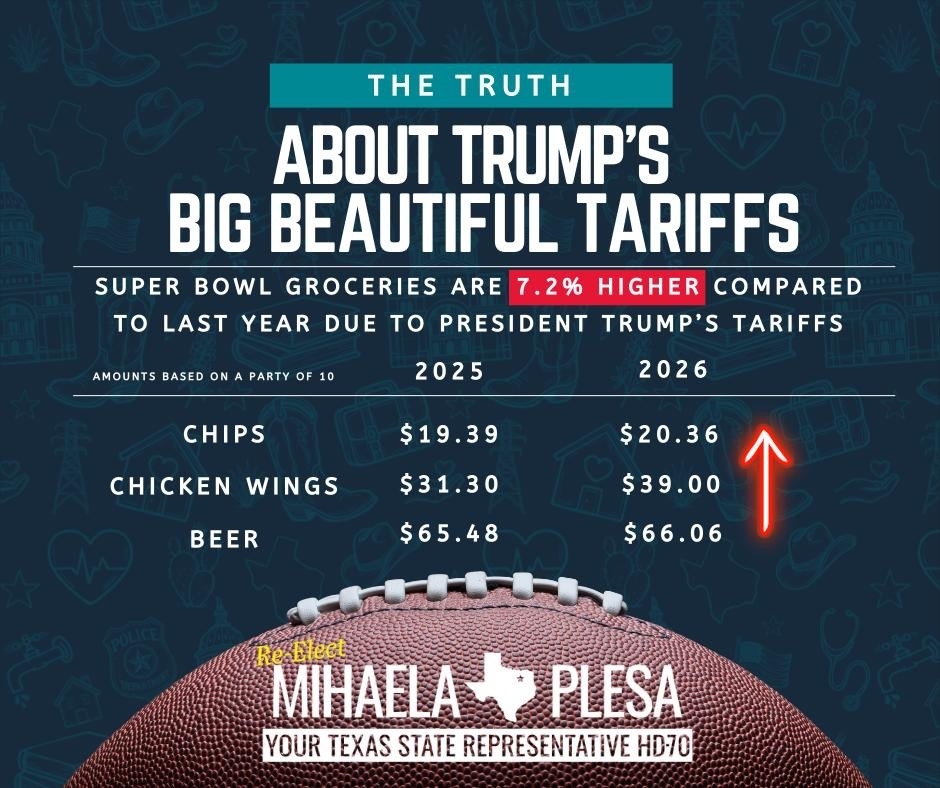 Flag on the play! What we should all be upset about is that Texans picking up Super Bowl party supplies today will pay 7.2% ⬆️ higher prices at checkout compared to last year due to President Trump's tariffs. There's nothing Super about that.🏟️🏈