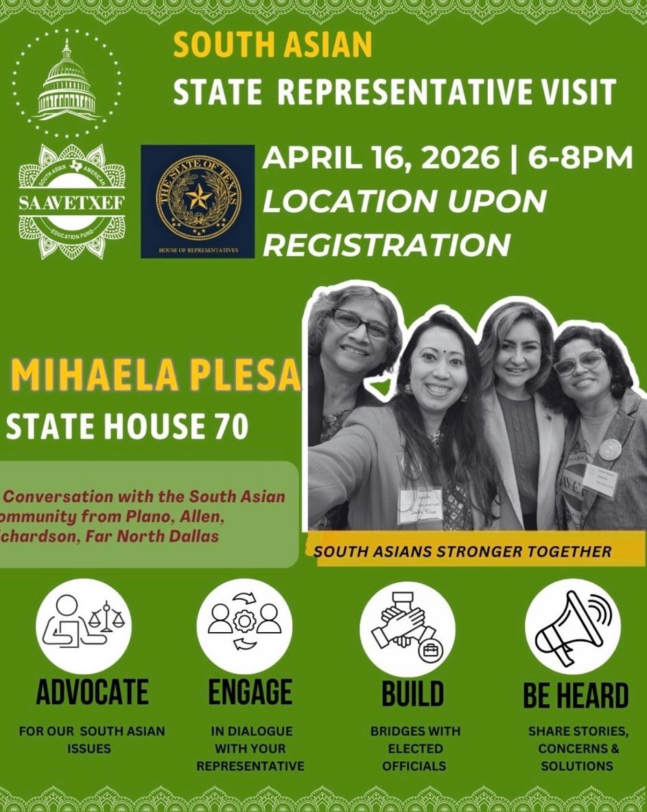 South Asians are one of the fastest-growing communities in Texas, and your voices deserve to be heard in the rooms where decisions are made. Join me tomorrow at 6:00 PM for an in-person conversation about what your families are facing, what matters most to you, and how we can work together to ensur...Read more