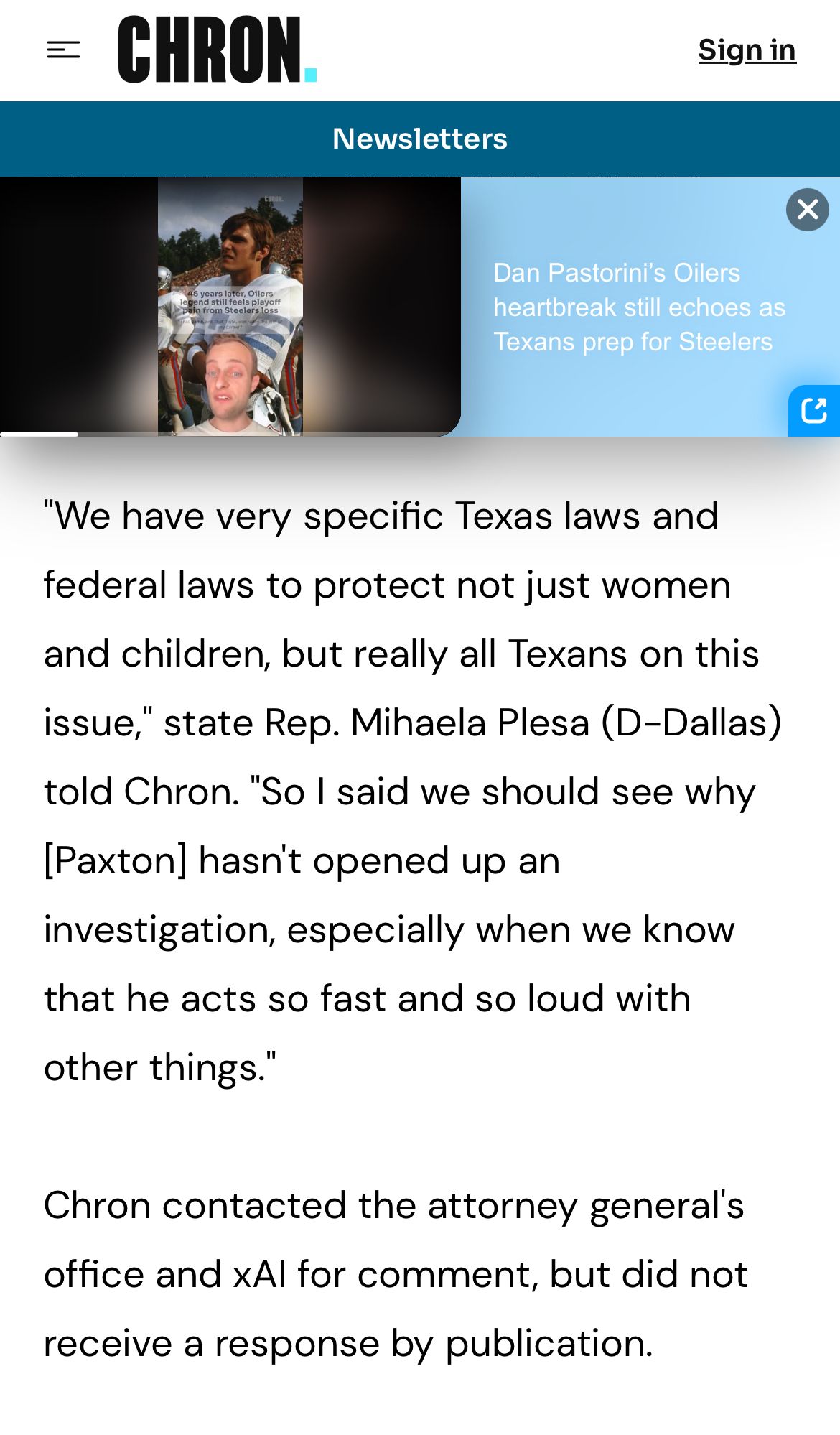 Grok will undress any photo you give it. A classmate, a coworker, a child. Elon Musk knows this and won’t stop it. Ken Paxton knows this and hasn’t acted,” state Rep. Mihaela Plesa, D-Plano We’re asking AG Paxton to focus on our kids and give victims a clear path to get images removed and get legal...Read more